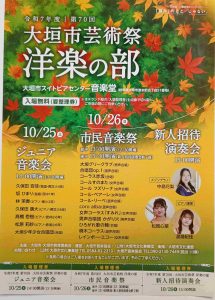 昨10月26日(日)の午後に開催された大垣市芸術祭の市民音楽祭にコールリーベとして参加させていただきました。「君をのせて」「ふるさとみどりの上石津」2曲を心こめて精一杯のコーラス合唱を会場の皆さまにお届け致しました。秋も深まる気配の昨日のことです。