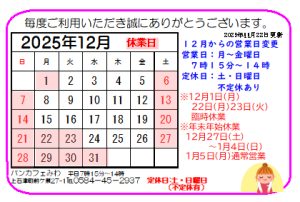 営業日 平日:月曜日~金曜日 7時15分~14時まで